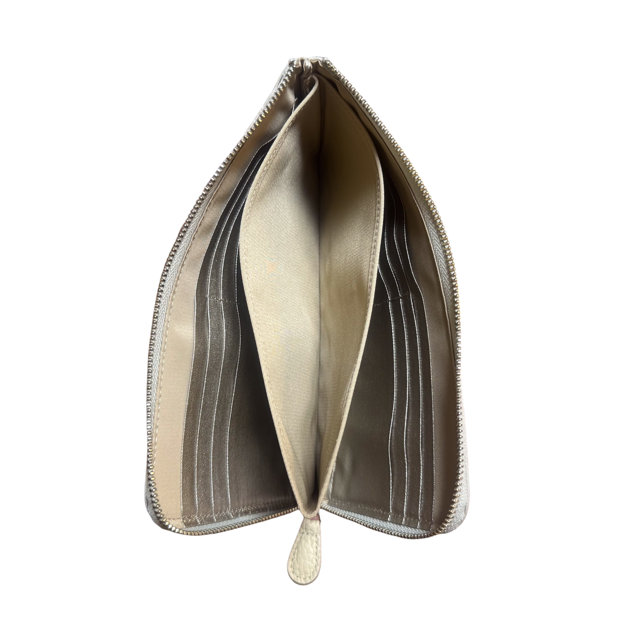 キラキラと眩い輝きを放つ長財布。通帳が入る少し背の高いサイズです。