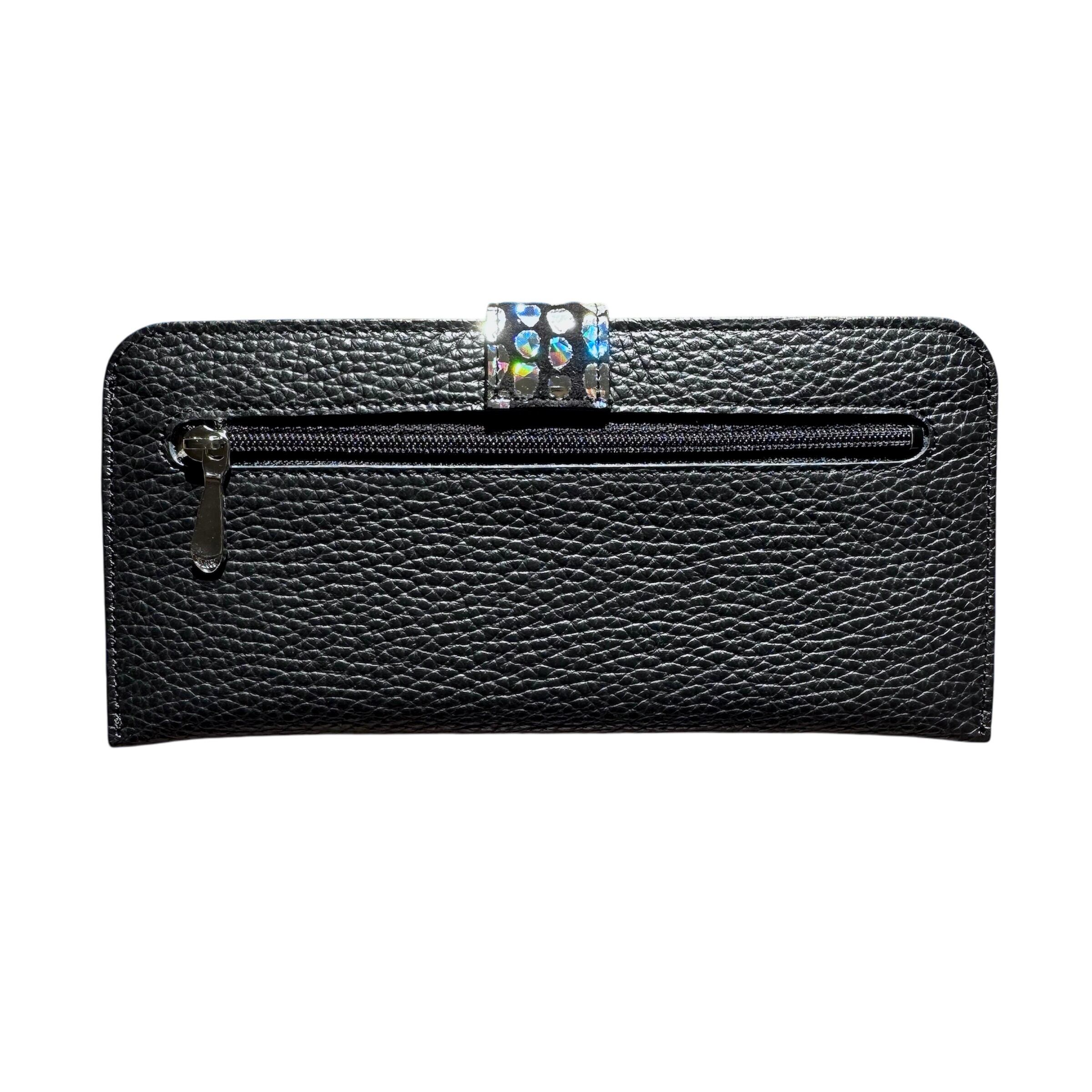 仕様:スナップボタンによる開閉/背面にファスナーポケット1ヶ所/内側に札入れ1ヶ所、カード入れ6ヶ所